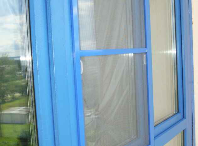 Профиль внутренней москитной сетки удобное решение для окон первых этажей, где плотно к окнам установлены металлические решётки, т.к. рамы москитной сетки можно вставить изнутри, не вытаскивая москитную сетку наружу.